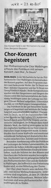 Im Nächsten Absatz der WKZ-Bericht über das Konzert in Waiblingen: